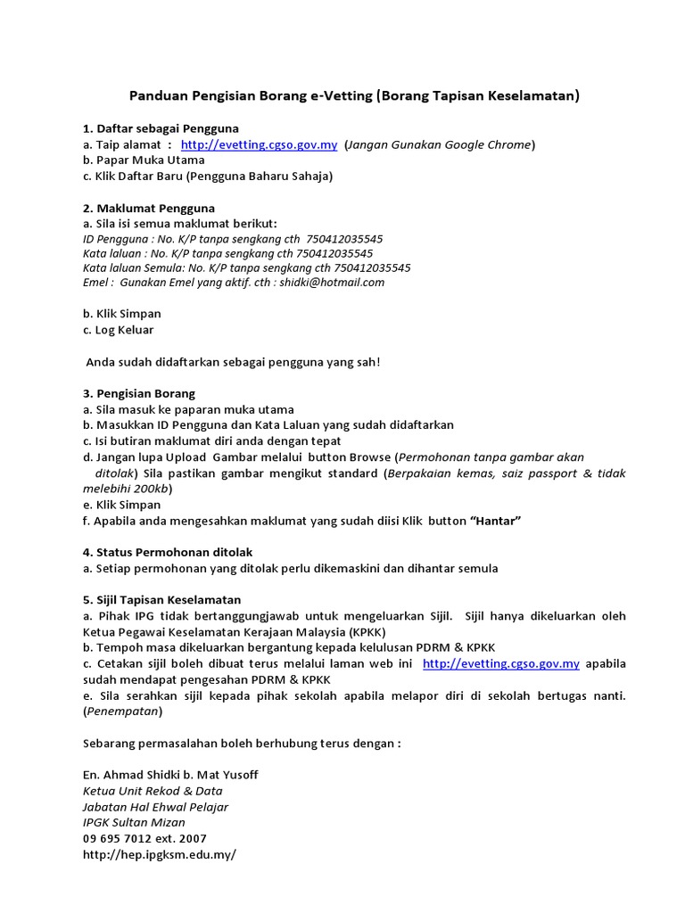 Panduan Mudah Mengisi Borang E Vetting Afiq Halid