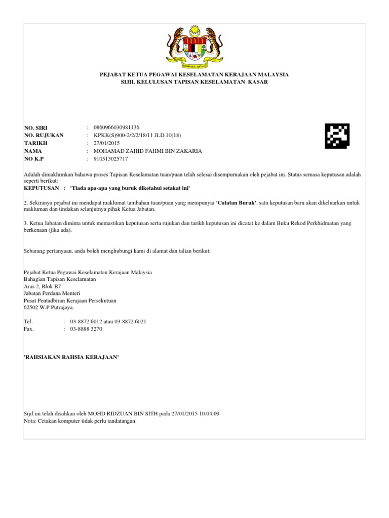 Isi Borang Tapisan Keselamatan Secara Online Zik My