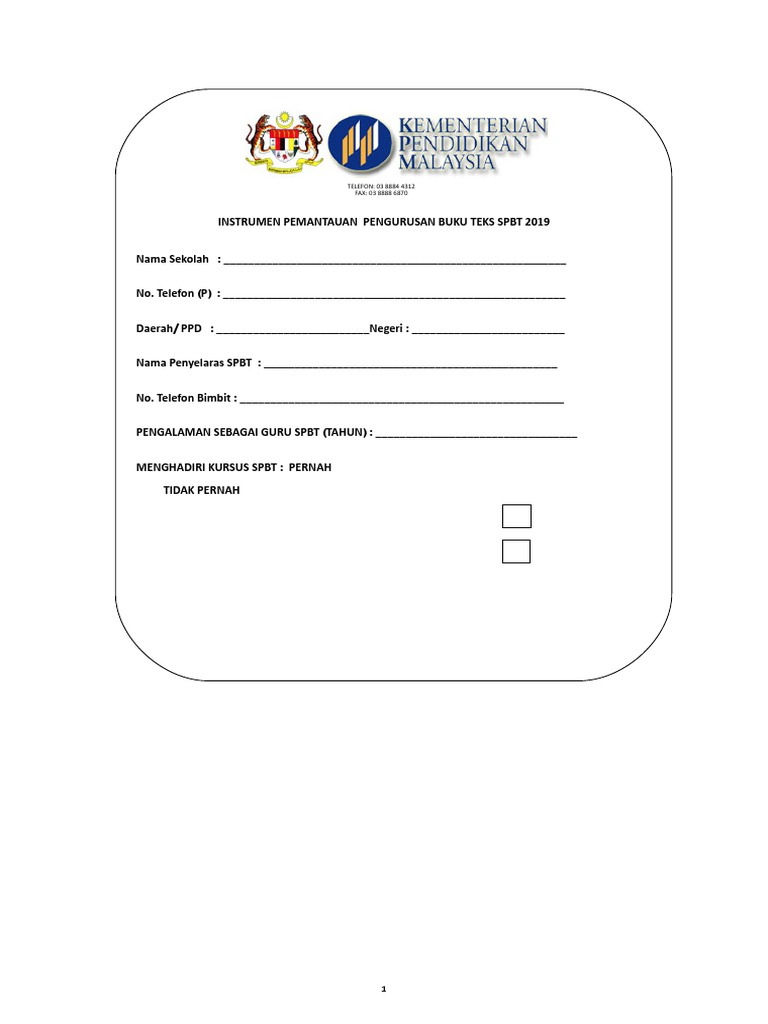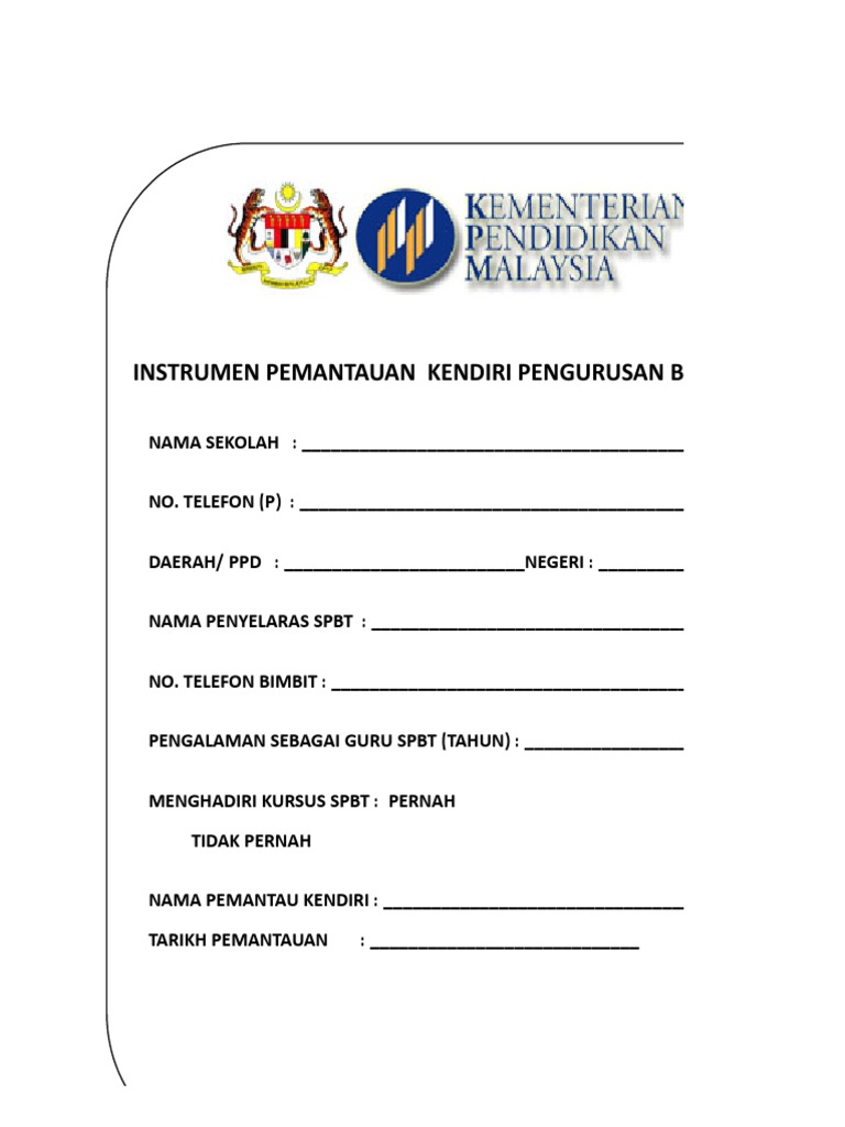 Instrumen Pemantauan Kendiri Pengurusan Buku Teks Spbt 2018 Xlsx