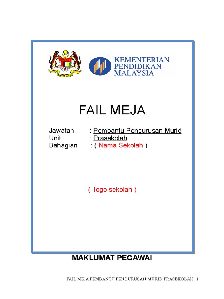 Prasekolah Sk Pesang Begu Fail Meja Guru Prasekolah