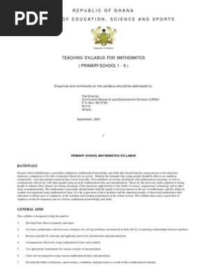 Mathematics Syllabus Primary 1 6 Educational Assessment Test Assessment